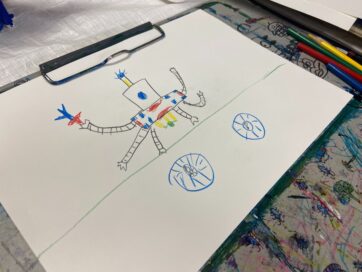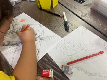 画用紙と色鉛筆でひたすら枚数を描いてシリーズ化している子たちも。