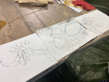 今回は黒塗りと下描きまで。次回、マスキングテープで下描きを再現します。