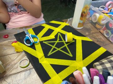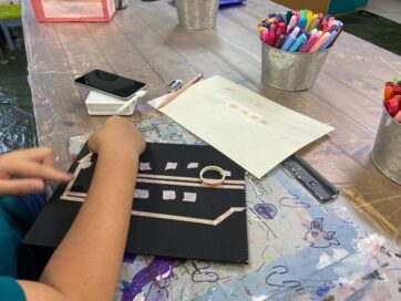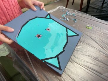 ステンドグラス風のキャンバス画が終わっていない子は同時並行で制作。
