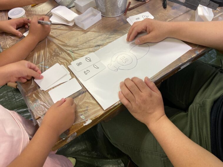 食品サンプルや眼鏡を作ったり、段ボールアニマルの色塗りをしたり。