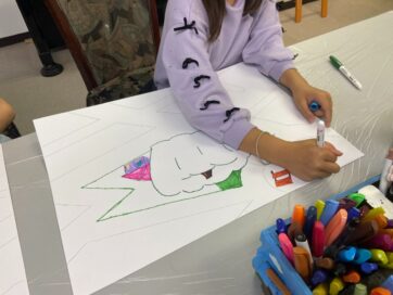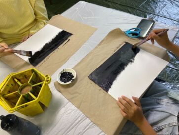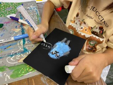キャンバス画を制作し始めた子たちは今回はテープを貼るところまで。