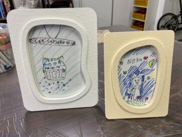自分で持ってきたフォトフレームに合う絵を描いた子や