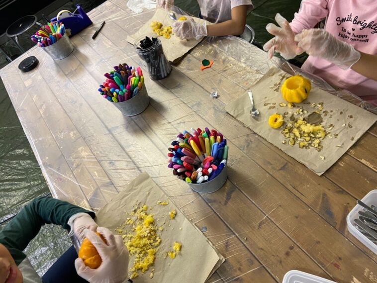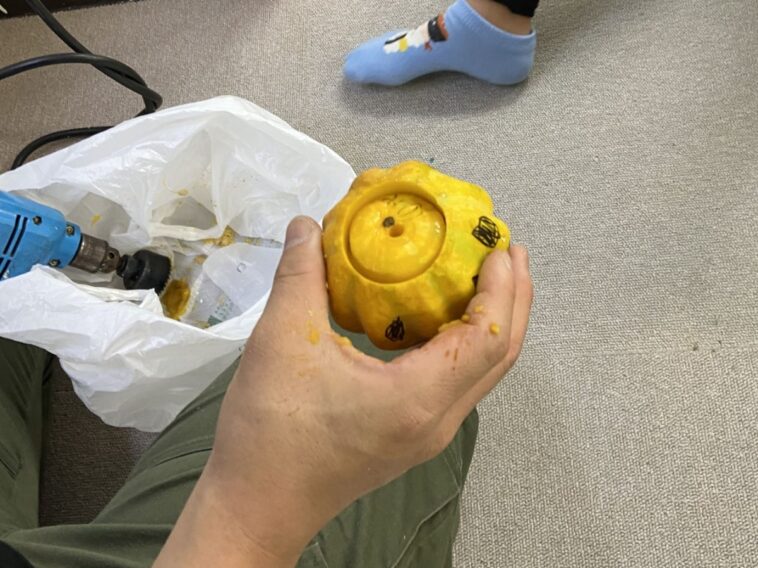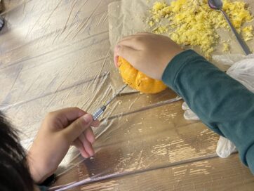今週の水曜日は例年より早いですが「かぼちゃランプ」を制作しました!