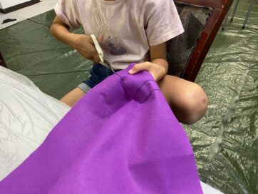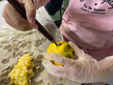 スタッフが仕上げや硬い部分をお手伝いしている間に子供たちは装飾を作ります。