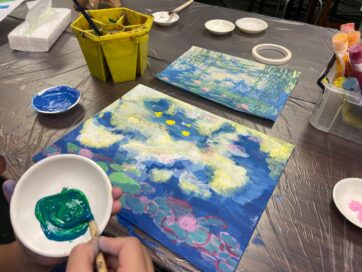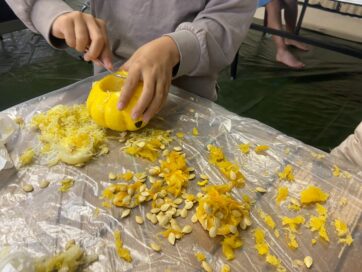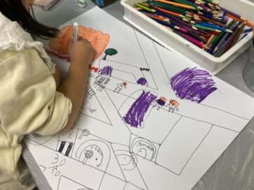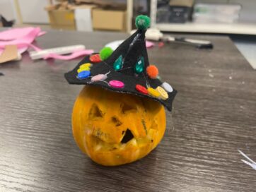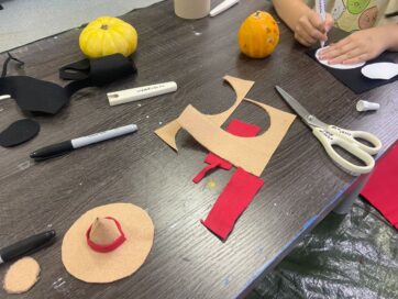 キャンバス画を描いたり、色々な材料を使って立体作品やハロウィン街の続きをしたり。