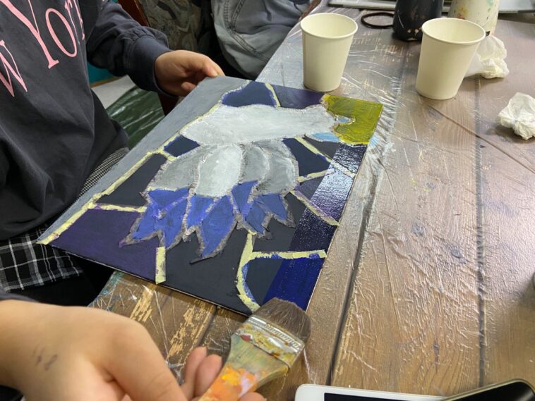 絵の具を乾かしている間は少し休憩。