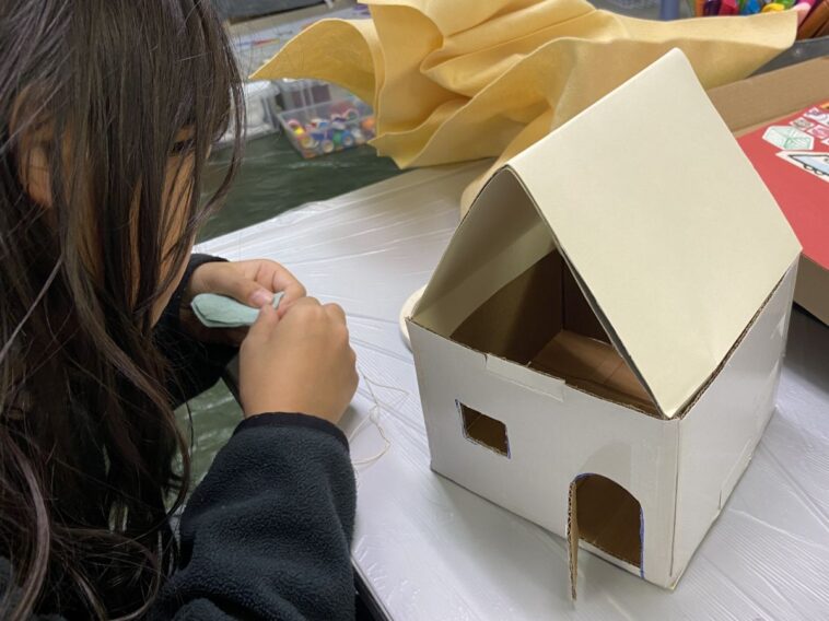 作品棚やお菓子の家、お人形など別の工作に発展していってました!