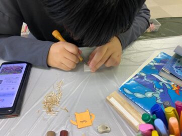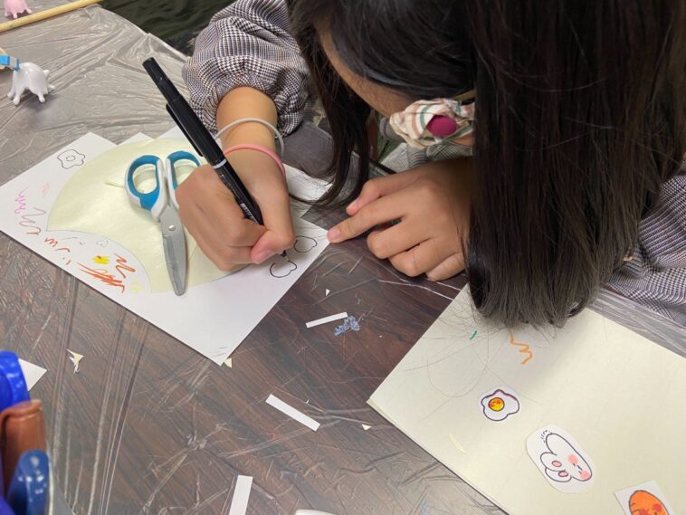 この子はシール紙を使って絵を描いて自作シールを作っていました。