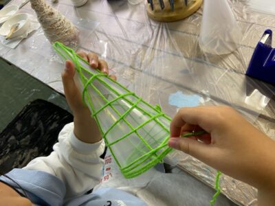 今週の土曜日は12月のテーマ「毛糸ツリー」を制作しました!