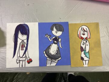 最近は制作の休憩にシール交換会をしています。なちも参加していたり。