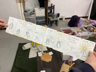 材料を貼り付けたり飾りを作ったりして完成しました!