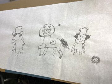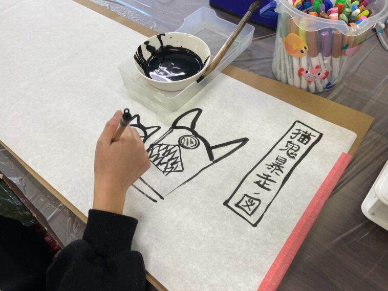 描き初めでは、独特なイラストや思ったことをそのまま描いて行ったり