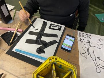 描き初めでは絵巻物を描いたり色紙を描いたり。