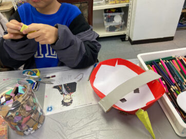 暇してた子たちには次回やってみようか悩んでいたお面作り。
