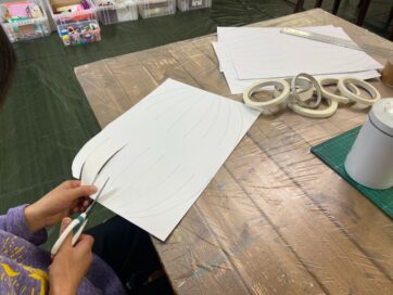 紙を切って、組み立てて、好きな色の折り紙を貼っていきます。