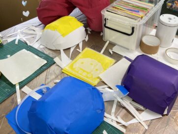 お面制作と珍しい画材