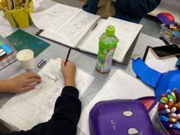 他の子たちは漫画を描いたり、午前中に制作していた粘土作品の