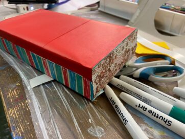 空箱と折り紙で土台も作ります。