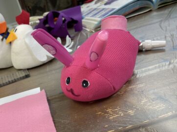 靴下ぬいぐるみではウサギを作ったり材木ねこちゃんを制作したり