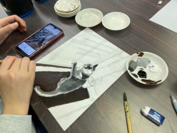 自主製作でキャンバス画をしている子たちは