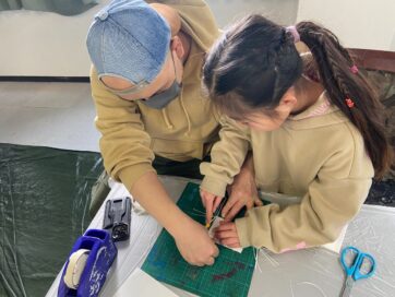 紙の切り方を教えたら、スーッと切れる感覚にハマって