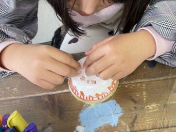 ほかの工作ではカップのような材料を使ってケーキを表現したり