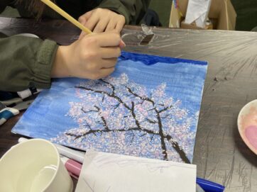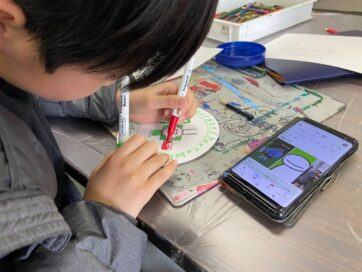午後の自主制作では午前中と同じ丸キャンバスをしたり