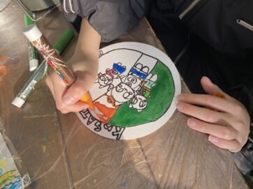 製作途中のものがない子たちは丸キャンバスにお絵描き。